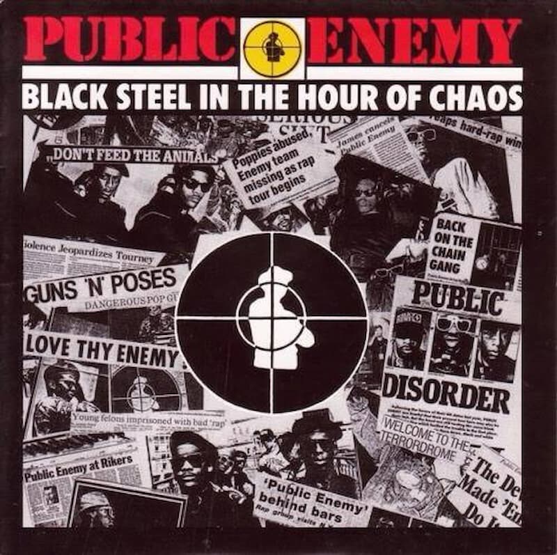“Black Steel in the Hour of Chaos” is a song on the American hip hop group Public Enemy’s 1988 album, It Takes a Nation of Millions to Hold Us Back. It was released as a single in 1989. The song tells the story of a conscientious objector who makes a prison escape. It is built on a high-pitched piano sample from Isaac Hayes’ “Hyperbolicsyllabicsesquedalymistic”, from 1969’s Hot Buttered Soul.
